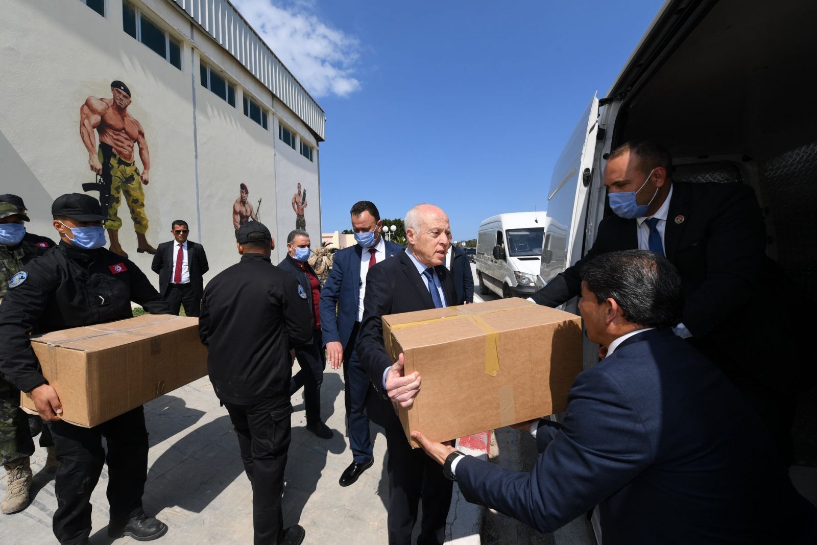 ونشرت رئاسة الجمهورية على منصات التواصل الاجتماعي، وموقعها الرسمي، صورا ومقاطع فيديو للرئيس سعيّد وهو يساعد عناصر من الأمن الرئاسي خلال شحن التبرعات نحو المناطق الفقيرة.