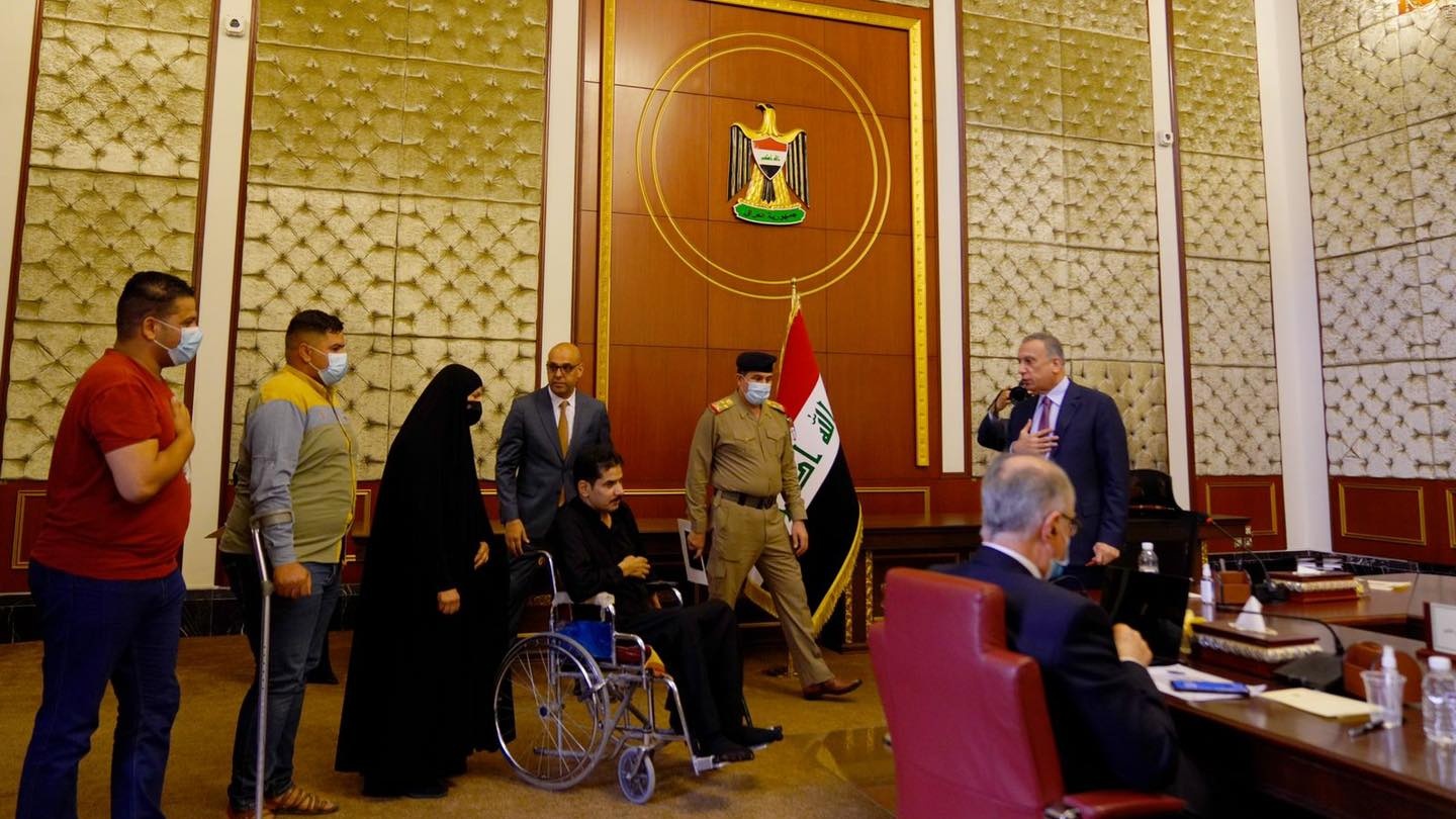 وجاءت لفتة الكاظمي التي لقيت ارتياحا شعبيا واسعا خلال ترؤسه امس الخميس الاجتماع الاسبوعي لحكومته حيث استقبل الام مع ابناءها الثلاثة الجرحى وهم من محافظة ذي قار الجنوبية متخليا لها عن كرسي الرئاسة لتجلس عليه وتخاطب الوزراء قائلة "لقد اعطيت الى الوطن ثلاثة من ابنائي ومستعدة لاعطي الرابع وانا اريد الان من الوطن علاجا لاحدهم المقعد على كرسي متحرك لانه مصاب منذ 14 عاما ولم تنجح كل محاولاتنا لاعادته الى طبيعته وأطلب الاهتمام بعلاجه".