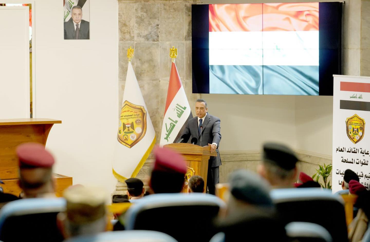 وخاطب القائد العام للقوات المسلحة رئيس الوزراء العراقي مصطفى الكاظمي خلال افتتاحه أعمال مؤتمر العمليات الفصلي لقيادة العمليات المشتركة للقوات العراقية لعام 2022 منتسبي وزارتي الدفاع والداخلية والحشد الشعبي وأجهزة مكافحة الإرهاب والمخابرات الوطني والأمن الوطني وكل الأجهزة الأمنية قائلا " نحن معاً لتقييم ما تم إنجازه خلال هذا الفصل من عمل العمليات المشتركة وفي كل القطاعات، وأقول إنكم إزاء مسؤولية كبيرة في حماية بلدنا وشعبنا من أجل عدم تكرار إخفاقات الماضي، وبوجودكم لن يحصل تجاوز على كرامة العراقيين" كما نقل عنه مكتبه الاعلامي في بيان صحافي تابعته "ايلاف".