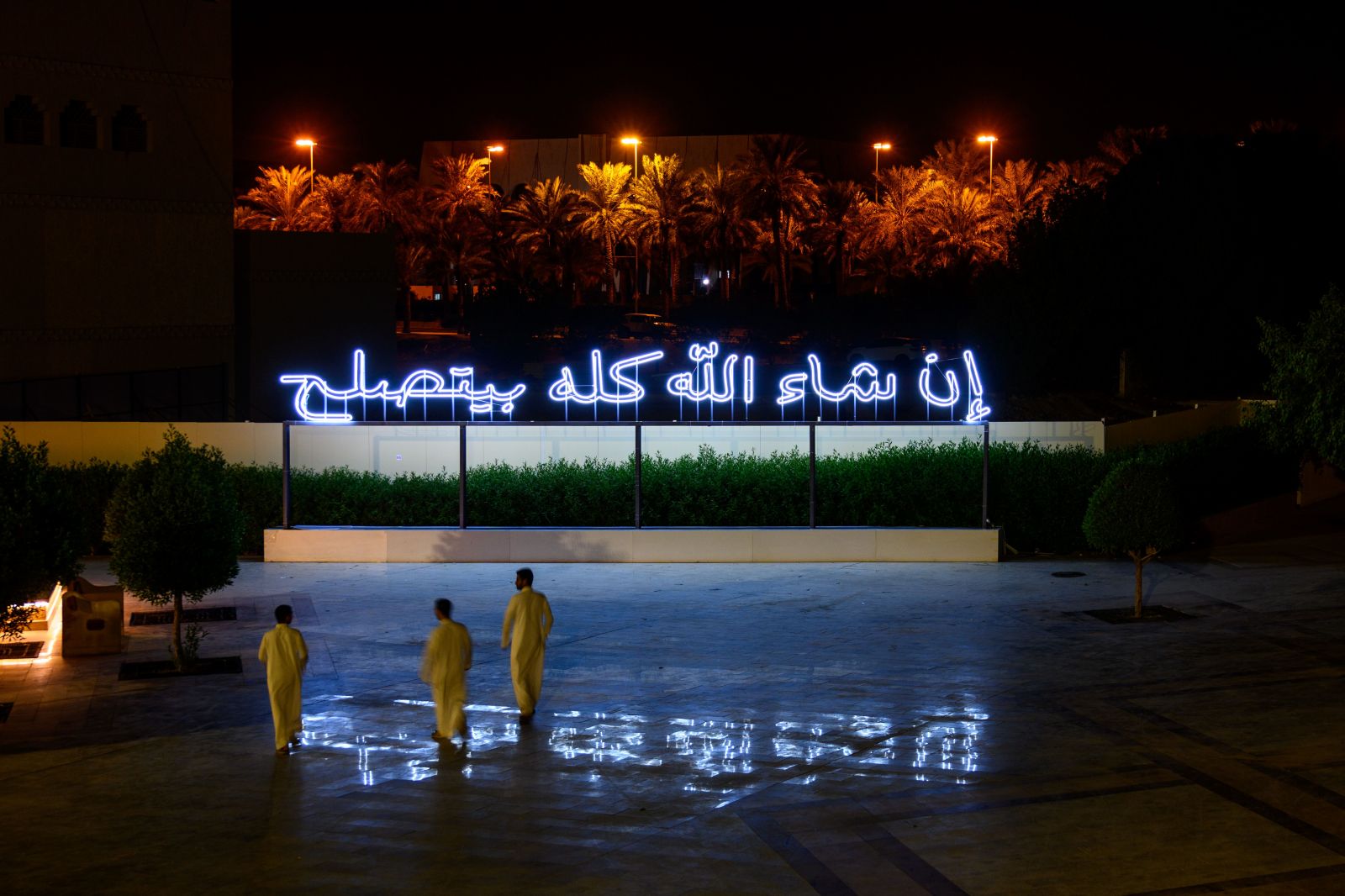 يسعى الفنان أيمن ديدبان إلى إبراز قوة اللغة العربية في الفضاء العام من خلال استنباطها من ممارسات الحياة اليومية وإعادة إدراجها في الحياة الواقعية كمظهر بصري جديد، حيث يطرح مفارقة معينة، ربما نقطة دخول روح الدعابة إلى واقعنا المعاصر لعالم محطم دائمًا. يقول الفنان: “ومع ذلك نخوض تجربتنا في هذه الحياة على أمل أنه في يوم من الأيام، إن شاء الله، سيتم إصلاح كل شيء”.