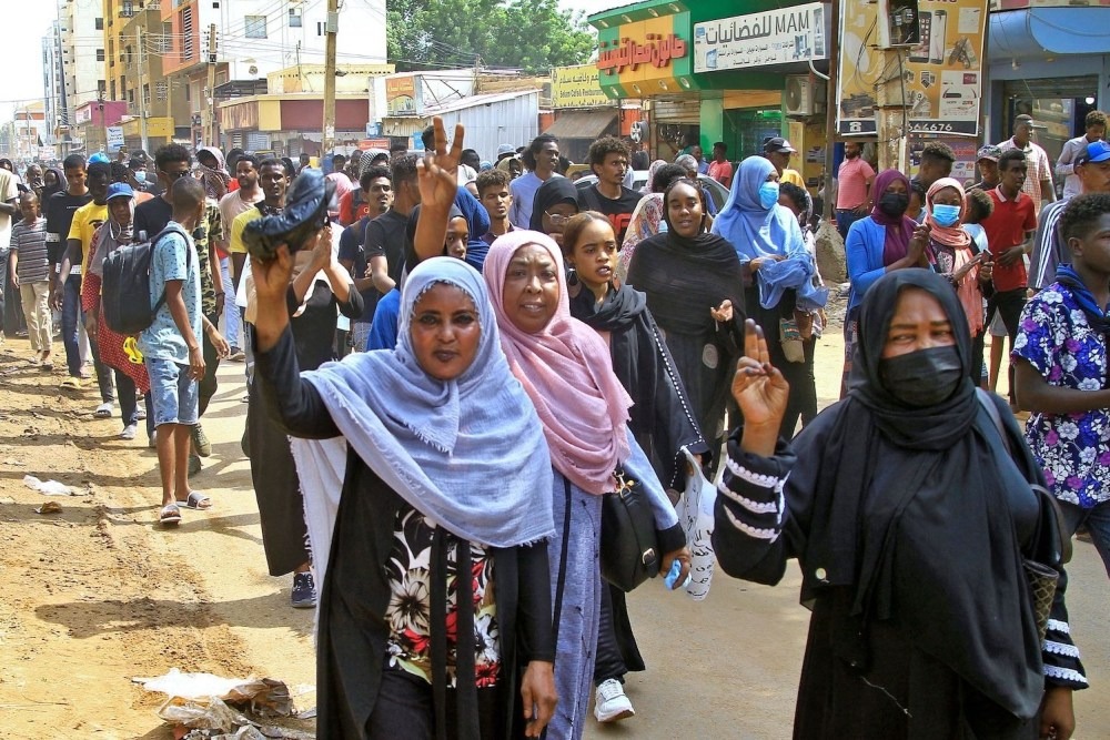 سودانيات يرفعن علامة النصر مطالبات بالعودة إلى الحكم المدني، في 13 سبتمبر 2022