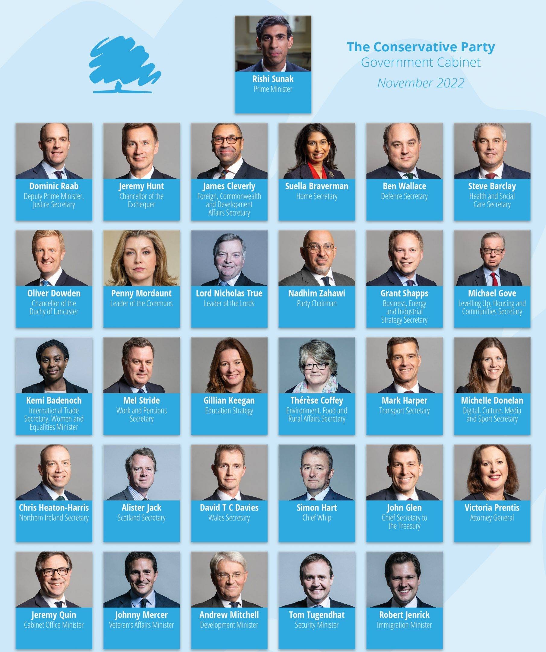 وظلت العديد من مراكز الظل الوزارية الرئيسية دون تغيير، حيث تم تعيين جيريمي هانت وزيرا خزانة في الظل، وجيمس كليفرلي وزيرًا للداخلية في الظل، مما يعكس الحقائب الوزارية التي شغلوها في الحكومة.
