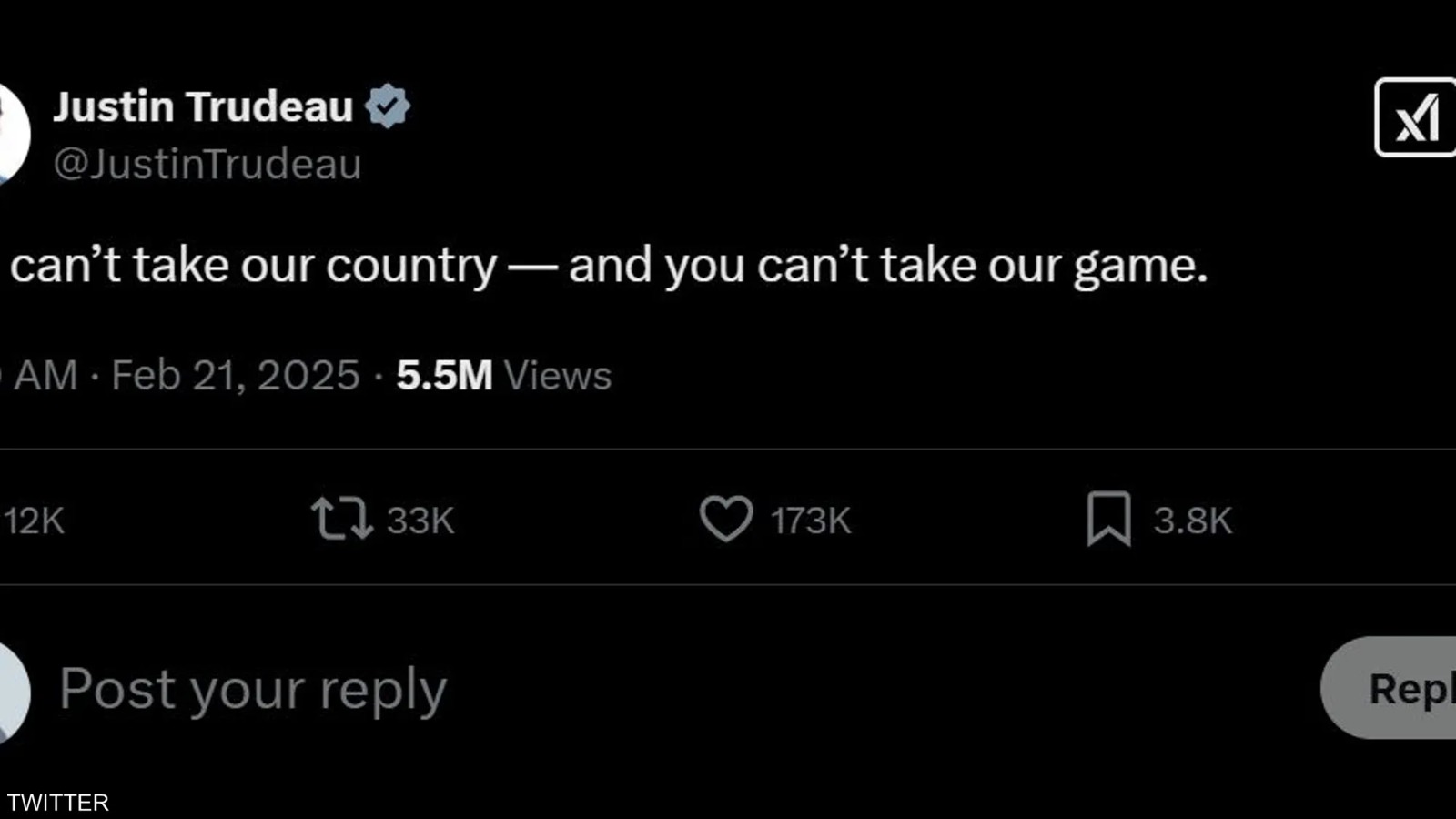 ونشر ترودو على حسابه في منصة "إكس" للتواصل الاجتماعي تعليقا ساخرا جاء فيه: "لن تتمكنوا من أخذ بلدنا، ولن تتمكنوا من أخذ لعبتنا".