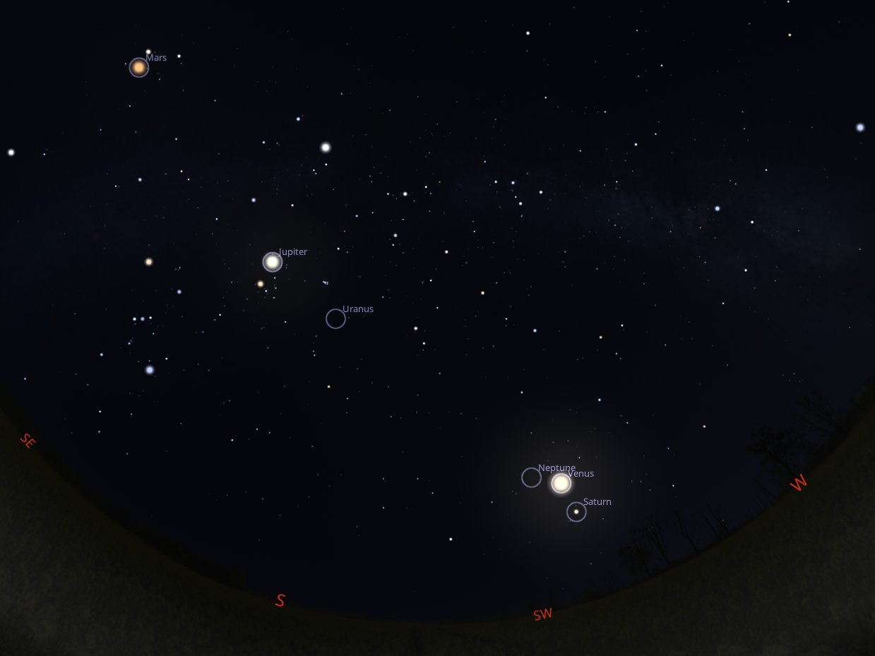 وتضيف ناسا أن المريخ والمشتري وزحل يُرى كثيرًا في سماء الليل، لكن إضافة الزهرة وعطارد جديرة بالملاحظة بشكل خاص.