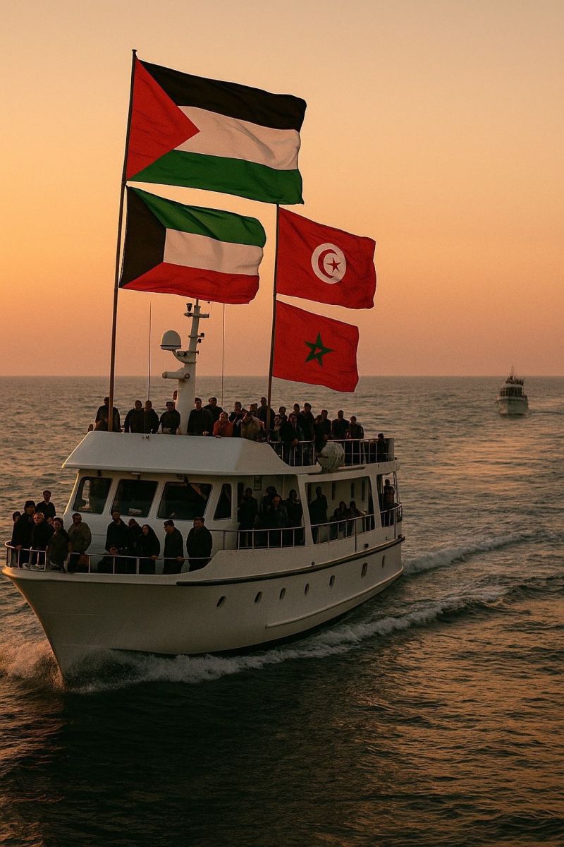 ويحمل أسطول الصمود العالمي على متنه الناشطة البيئية غريتا تونبرغ، وحفيد نيلسون مانديلا، ماندلا مانديلا، بالإضافة إلى عدد من النواب الأوروبيين. ويتألف الأسطول من نحو 50 قاربا تقل 500 ناشط، ويحمل كمية رمزية من المساعدات الإنسانية.