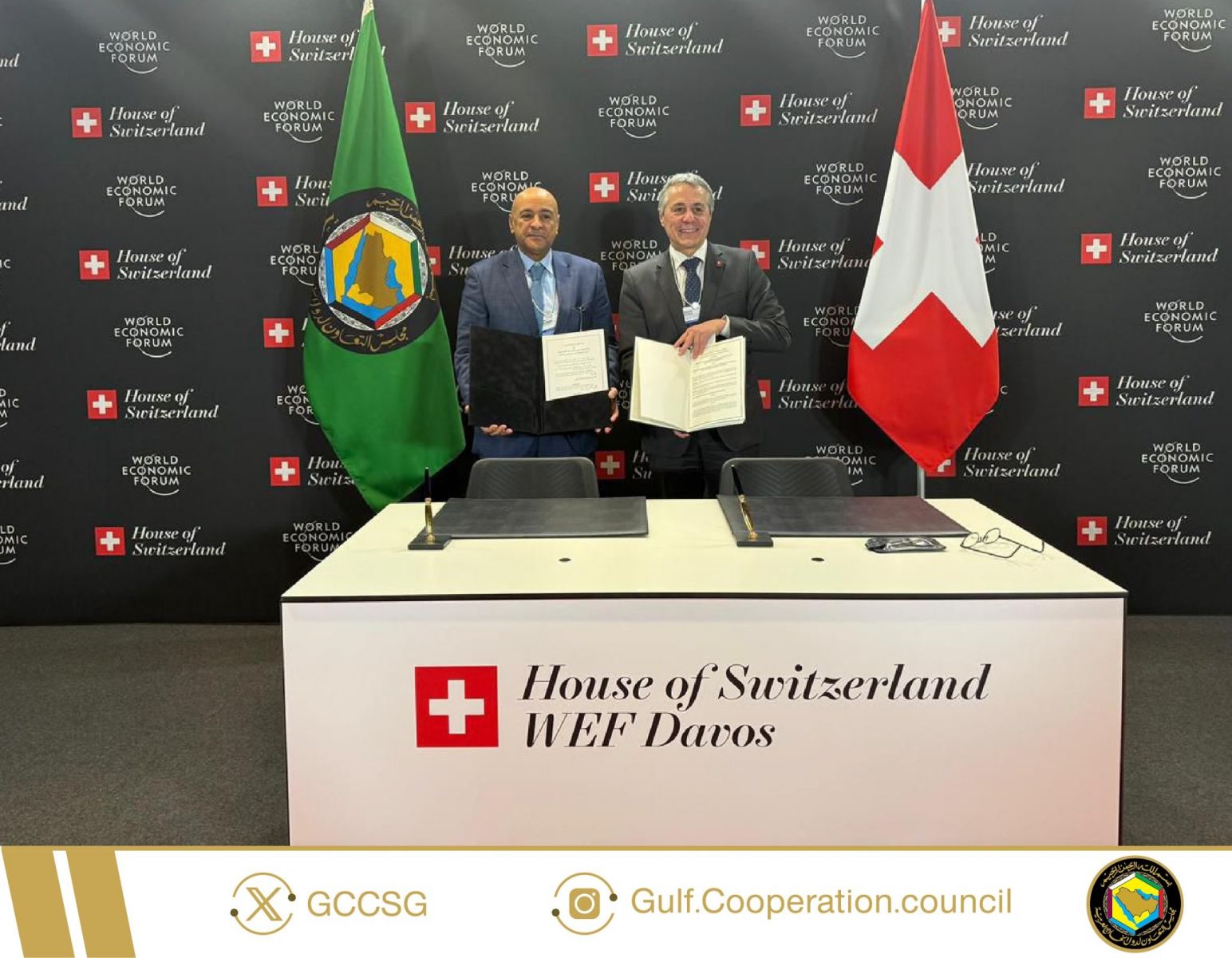 توقيع مذكرة تفاهم: في 20 يناير 2026، وقع مجلس التعاون وسويسرا مذكرة تفاهم لإقامة حوار استراتيجي بين الجانبين، وذلك على هامش المنتدى الاقتصادي العالمي (دافوس).