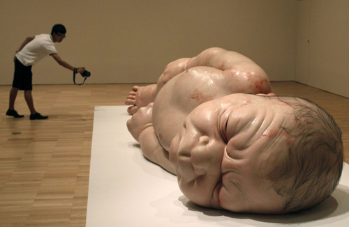 | عمل نحتي للفنان الأسترالي رون Mueck في معرض فيكتوريا الوطني في ملبورن في 10 فبراير 2010. |