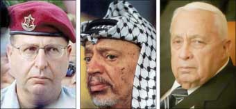 في اسرائيل واصلوا كل الوقت التفكير في ما العمل مع عرفات. وانقسم الاراء: كان هناك من اعتقد بانه يجب قتله بشكل علني؛ بعض اعتقد بانه يجب المس به بشكل خفي، بحيث لا يربط بذلك باسرائيل؛ وكان هناك من ادعى بانه يجب طرده؛ وبعض آخر قال انه يجب تركه 'يتعفن' في المقاطعة. بعد احدى العمليات الشديدة في حزيران 2002 أدار بينهما شارون ورئس الاركان موفاز حديثا كان يفترض أن يبقى سريا. فقد كانا يجلسان قرب مكبر صوت في مناسبة علنية ولم يعرفا بان فريق القناة 2 قد ربط الميكروفون ويصورهما من بعيد: