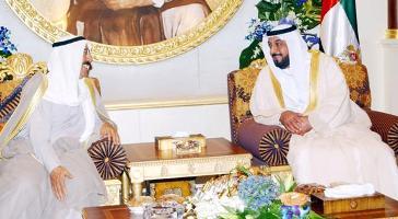 | الشيخ خليفة مستقبلا الشيخ صباح |