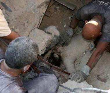 | أحد الأحياء تحت انقاض منزل استهدفه الطيران الاسرائيلي شرق صيدا |