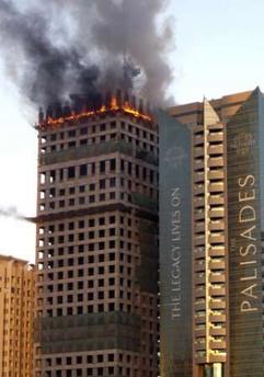 وسبق أن تكرر المشهد المؤسف في شهر يناير/ كانون الثاني 2007، عندما اشتعلت النيران في الطوابق العليا لأحد الأبراج قيد الإنشاء ايضا، المملوكة لشركة quot; نخيلquot; الحكومية، مما أدى إلى مقتل أربعة عمال، وإصابة نحو 57 آخرين.