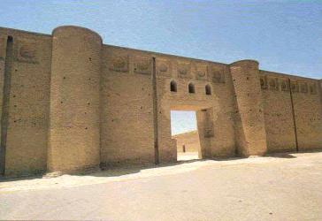كان يحيط بالمدينة سور مضلع على شكل يميل إلى الاستدارة مبني بالجص والآجر يصل ارتفاعه إلى 7 أمتار
