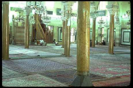ويقوم على يمينه قبر محمود سري باشا صهر الخديوي اسماعيل حاكم مصر وقبر الامير عبدالقادر الجزائري وقد ظل تابوته الخشبي فارغا في موضعه بعد نقل رفاته الى مسقط رأسه في الجزائر منذ سنوات بناء على طلب الحكومة الجزائرية.وبعد انتهاء بناء الجامع عين له السلطان سليم الاول اربعة مؤذنين وثلاثين قارئا للقرآن الكريم حيث غدا من اعظم المساجد في تلك الفترة وهو لا يزال من اعظمها حتى الوقت الحاضر.