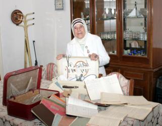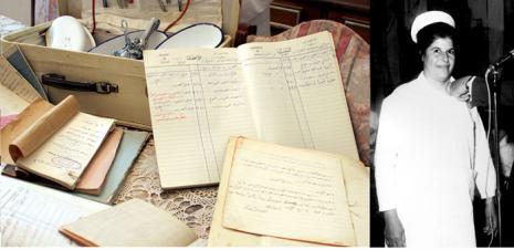 وتصفحت دفاتر دراستها في مدرسة القبالة في القدس التي بوبتها وما زالت تحتفظ بها وتقول ان الباب الاول تضمن المطهرات في الولادة والثاني البسة القابلة القانونية والثالث الحبل السري والرابع الطفل والخامس تعثر الولادة ونقل الام للمستشفى.