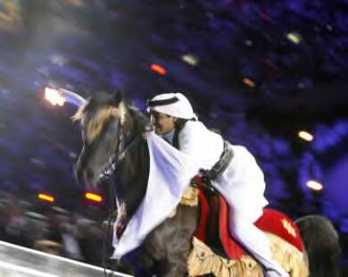 وقال الفارس محمد بن حمد: لقد تدربت لمدة ثلاثة أشهر على القيام بإيقاد شعلة الدورة من على ظهر الحصان ملثماً لكي لا أكشف عن هويتي، وقمت خلال هذه الفترة بتجربة ثلاثة أحصنة حتى تم اختيار الحصان الذي امتطيته خلال حفل الافتتاح.. وهو حصان عربي أصيل ويتمتع بمميزات عديدة وهو المفضل لدي.. وقمنا بتغيير اسمه بعد حفل الافتتاح وسميناه الشعلة.