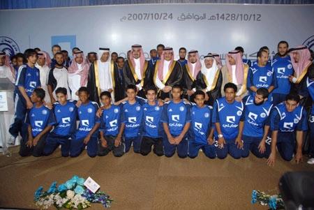 إيلاف من الرياض، واس: رعى الامير سلطان بن فهد بن عبدالعزيز الرئيس العام لرعاية الشباب رئيس اللجنة الاولمبية السعودية بحضور الامير نواف بن فيصل بن فهد بن عبدالعزيز نائب الرئيس العام لرعاية الشباب نائب رئيس اللجنة الاولمبية العربية السعودية حفل تدشين اتفاقية الشراكة الاستراتيجية بين نادي الهلال وشركة اتحاد الاتصالات / موبايلي / وذلك بقاعة الامير سلطان بن عبدالعزيز بفندق الفيصلية بالرياض .وبدأ الحفل المعد لهذه المناسبة بتلاوة آيات من القران الكريم ثم القيت كلمة نادي الهلال القاها عبدالرحمن النمر اكد فيها ان هذه الاتفاقية ستكون النواة الاولى والانطلاقة الحقيقية للاستثمار السعودي الذي سيكون له الاثر الايجابي في دعم الكرة السعودية ورياضة الوطن من خلال الاندية .صورة جماعية للأمير سلطان مع الحضور .تصوير يوسف السعد - إيلاف
