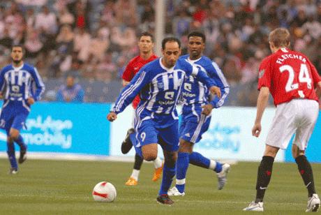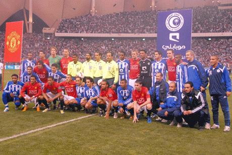 إيلاف من الرياض : فاز الهلال السعودي على نظيره مانشيستر يونايتد الانكليزي بثلاثة أهداف مقابل هدفين في المباراة التي جمعت بينهما مساء الإثنين على استاد الملك فهد الدولي في الرياض بمناسبة مهرجان اعتزال قائد نادي الهلال والمنتخب السعودي سامي الجابر. وجرت المباراة بحضور جميع نجوم مانشسيتر يونايتد يتقدمهم البرتغالي كرستيانو رونالدو والانكليزي واين روني وتيفيز، الذين استعرضوا امام 80 الف مشجع سعودي تابعوا المباراة من ارض الملعب.وسجل أهداف الهلال الذي لعب معه عدد من نجوم الكرة السعودية كل من ياسر القحطاني سامي الجابر وبدر الخراشي، فيما سجل لمانشستر يونايتد