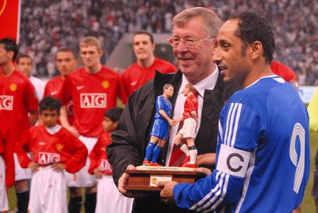 | الجابر يقدم لمدرب مانشيستر هدية تذكارية تصوير إيلاف |