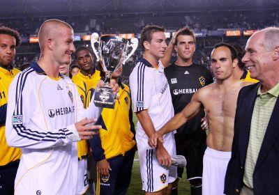 | بيكهام يحتفل مع زملائه في احدى البطولات الاميركية |