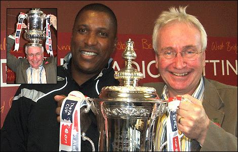 | اندرسون متوجا باحدى الكؤوس مع مدربه هولمز |
