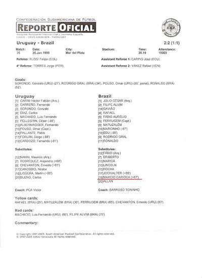25 يناير 1999: البرازيل ndash; الاورغواي (2/2)