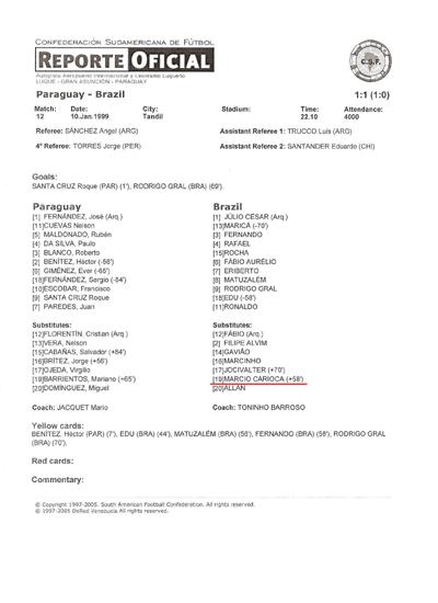 10 يناير 1999: البارغواي ndash; البرازيل (1/1)