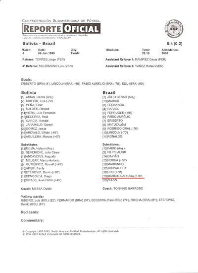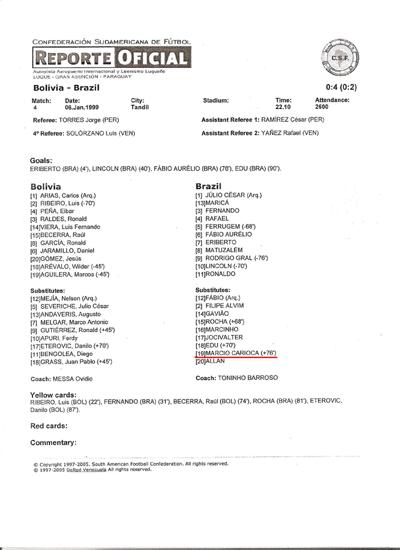 6 يناير 1999: بوليفيا ndash; البرازيل (0/4)