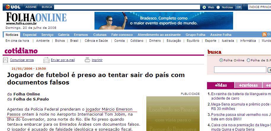 خبر القاء القبض على ايمرسون في البرازيل على خلفية تزوير شهادته في طريقه للعودة الى قطر في يناير 2006: