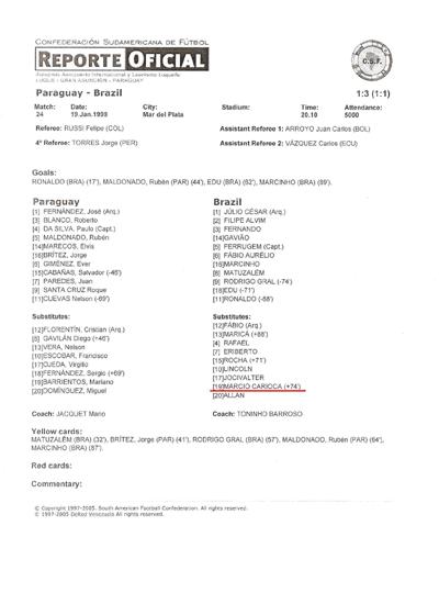 19 يناير 1999: البارغواي ndash; البرازيل (1/3)