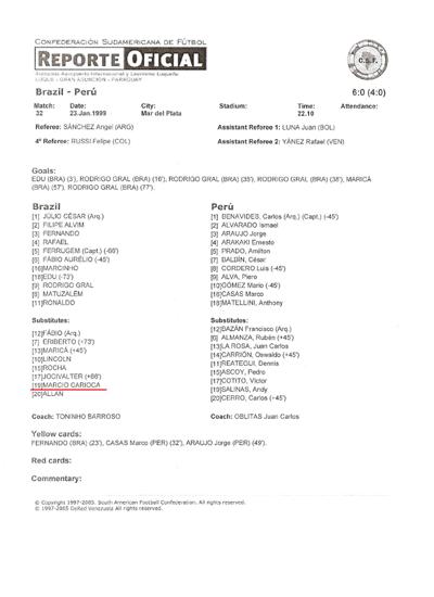 23 يناير 1999: البرازيل ndash; البيرو (6/0)