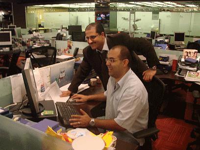 | لطفي الزعبي مع المنتج بالقسم الرياضي بالعربية وحيد رزق المصري |