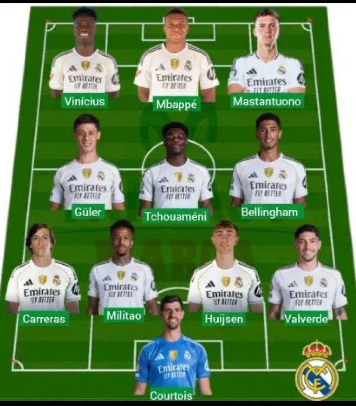 - بيلينغهام - غولير - تشواميني - فالفيردي - فينيسيوس - كيليان مبابي.