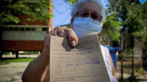 وتتفاعل الفتاة الصغيرة مع العرض بالضحك والغناء، في حين تُقاس حرارتها. وتنظر إليها شقيقتها الكبرى أماندا ميدينا (16 عامًا) التي ترغب في دراسة الهندسة المعمارية بفرح وارتياح. وهي تكشف أنّ أطفالًا آخرين "عانوا" من فيروس كورونا والبعض ما زالوا متأثّرين بالمرض.