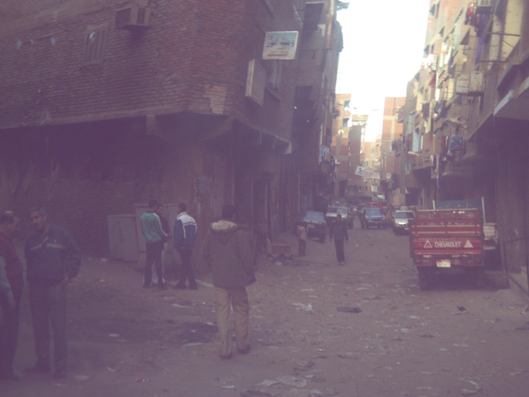 في الشارع الرئيس تلفت نظرك مقالب قمامة متراصة على الجانبين تكسوها الحشرات بأنواعها . منازل مبنية بشكل عشوائي ينعكس ذلك على صورة الشارع و التعرجات الشديدة به والمنازل و المطالع التى تشعرك بسرعة نبضات قلبك وألام شديدة فى قدميك وصعوبة فى السير. يبدو الشارع غير ممهد لسير السيارات والمواطنين، لكن يلاحظ ازدحام شديد بكلاهما.