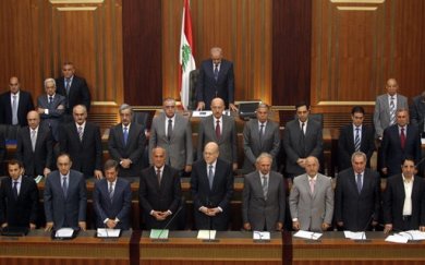 | أعضاء البرلمان اللبناني في افتتاح مجلس النواب لمناقشة البيان الوزاري |