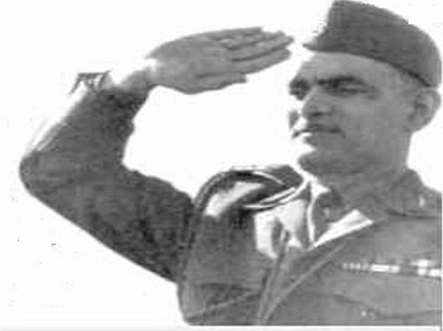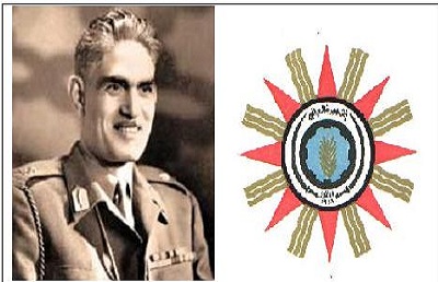 | الزعيم العراقي الراحل عبد الكريم قاسم وشعار جمهوريته الاولى |