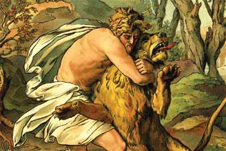 | شمشون يقتل الأسد بيديه |