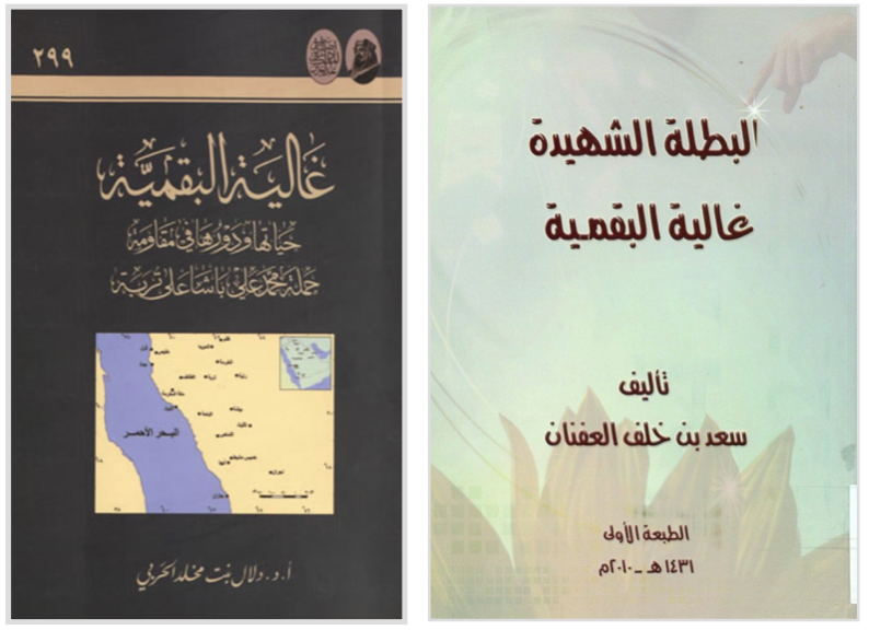 للاستزادة من سيرتها ومسيرتها العطِرة، يُنظر كتاب «البطلة الشهيدة غالية البقمية» للمؤلف سعد العفنان، وكتاب «غالية البقمية: حياتها ودورها في مقاومة حملة محمد علي باشا على تربة» للمؤلفة الأستاذة الدكتورة دلال بنت مخلد الحربي.