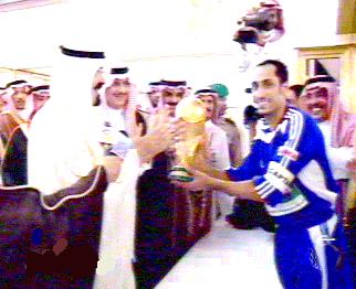 الأمير عبد الله بن عبد العزيز يسلم الكأس لقائد الهلال سامي الجابر